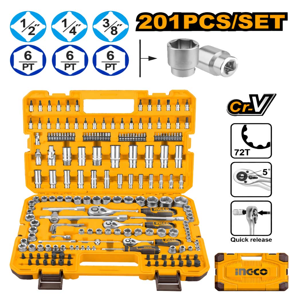 Upgrade your toolkit with the INGCO 201pcs Socket Set, a powerful all-in-one solution designed for professionals and serious DIY enthusiasts. With an extensive range of sockets in 1/4″, 3/8″, and 1/2″ drive sizes, this set ensures you’re always equipped for any repair, maintenance, or installation task. Whether you’re working on automotive repairs, machinery, or home improvement projects, this comprehensive kit delivers unmatched versatility and convenience in one durable case.